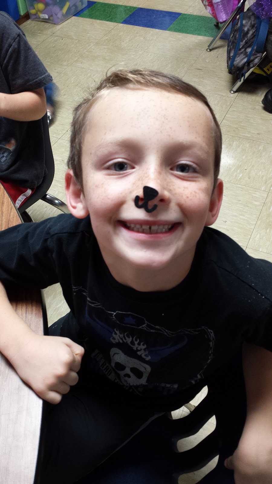 One thing Hensley has never ever been a fan of (or done) is face painting. I don't know what his aversion was to it but he just has never liked it. This year he wanted to give it a try and he liked it so much he got TWO!